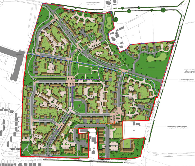 This 17.9 hectare site was acquired in two parts from two different landowners. The greenfield land had not been promoted previously and was located outside of the town's development boundary. However, promotion of the site over several years allowed the Local Planning Authority to see the opportunity of this development and eventually support it, granting planning permission for 360 units. The whole site is being developed by a mainstream housebuilder.